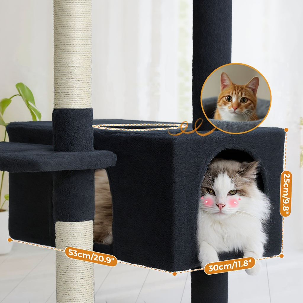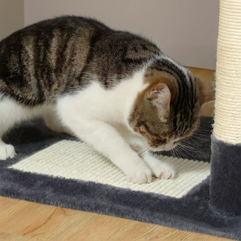 Les 7 poteaux renforcés recouverts de sisal épais offrent des surfaces de grattage durables, tandis que la large zone horizontale à la base permet aux chats d’entretenir leurs griffes tout en s’amusant.