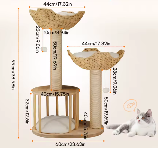 La base renforcée garantit une stabilité maximale et empêche le basculement, tandis que la balle suspendue et le griffoir intégré stimulent le jeu et l’exercice. Les matériaux naturels et sélectionnés assurent une durabilité et une sécurité adaptées à tous les chats et chatons. L’assemblage est simple grâce aux instructions et au matériel inclus.