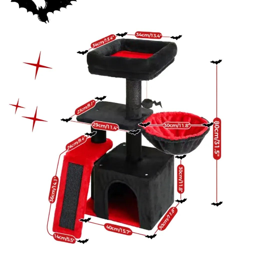 🎃 Arbre à Chat Griffes d’Or Édition Halloween – Tour Modulable en Bois avec Hamac et Griffoirs en Sisal (73 cm)