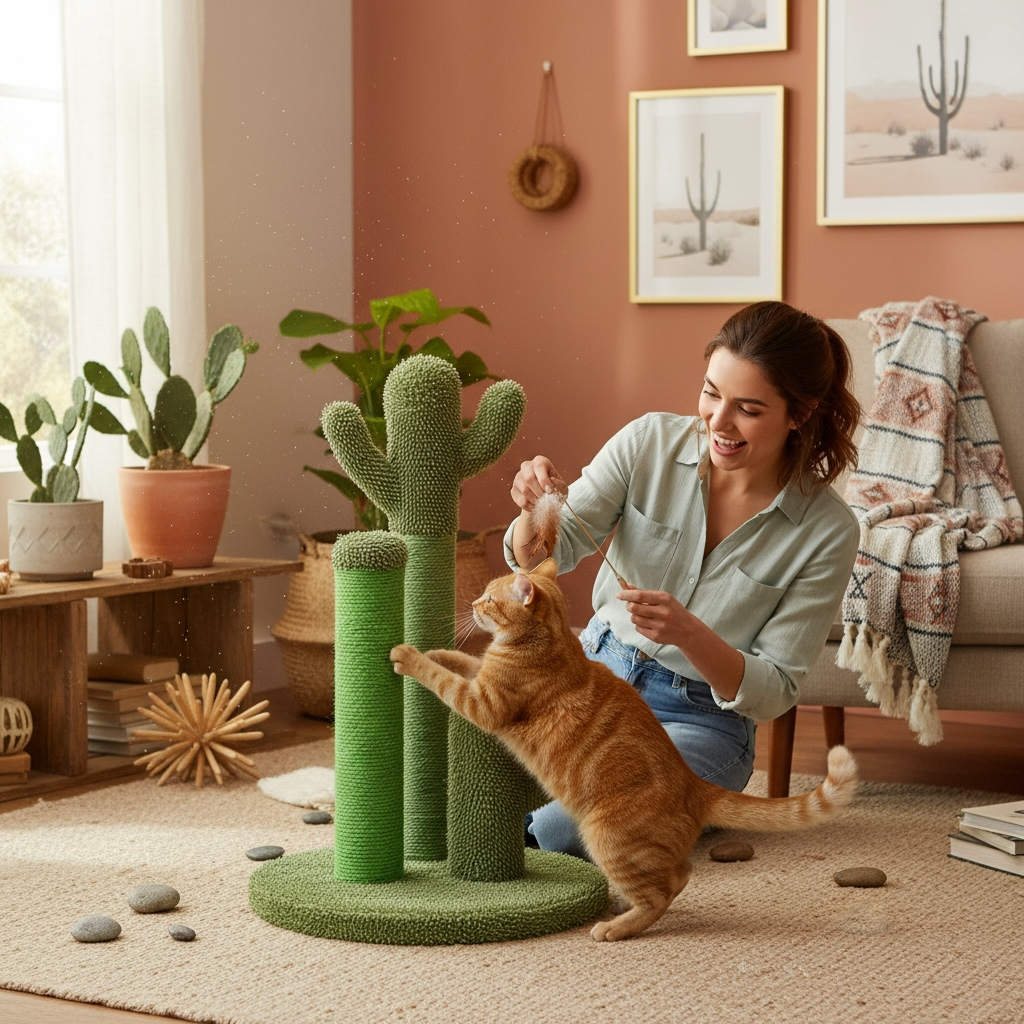 Griffoir Cactus pour Chat – Sisal Naturel, Jouet Suspendu et Confort Premium